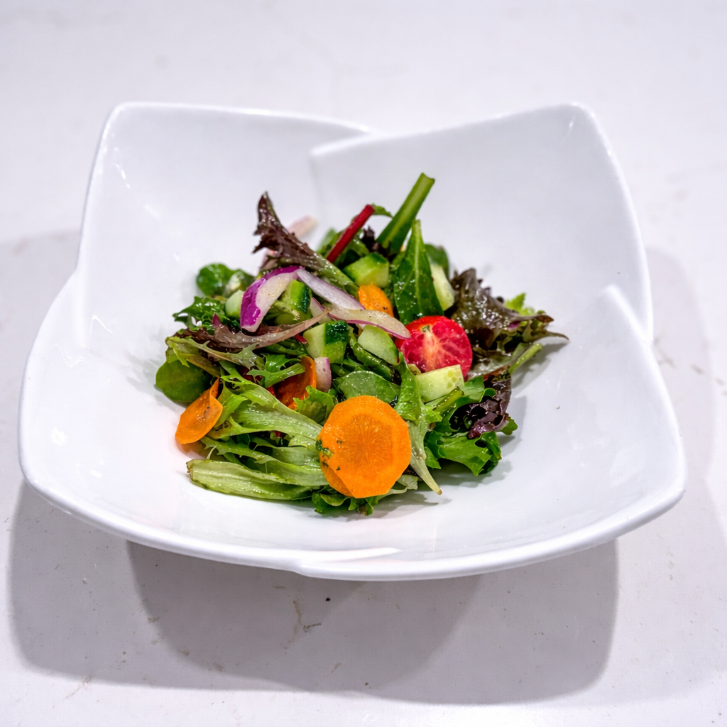 Greens, red onion, cherry tomatoes, carrots, cucumber, morabeza dressing.